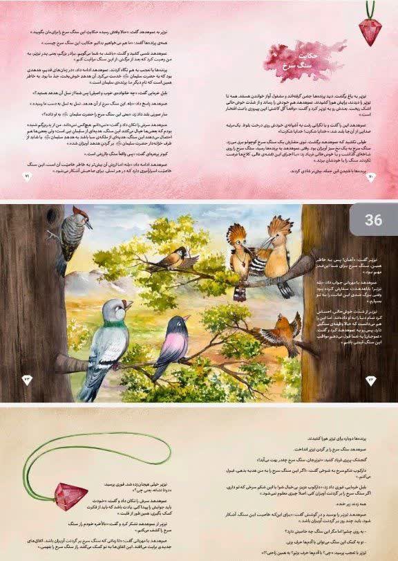 از زیباترین کتابهای این مجموعه کتاب راز سنگ سرخ است که در این داستان اتفاقات جذابی در کشورهای اسلامی رخ میدهد. شخصیت های اصلی داستان پرندگان هستند و به نحو زیبایی با تکنیک آبرنگ تصویرسازی شده.